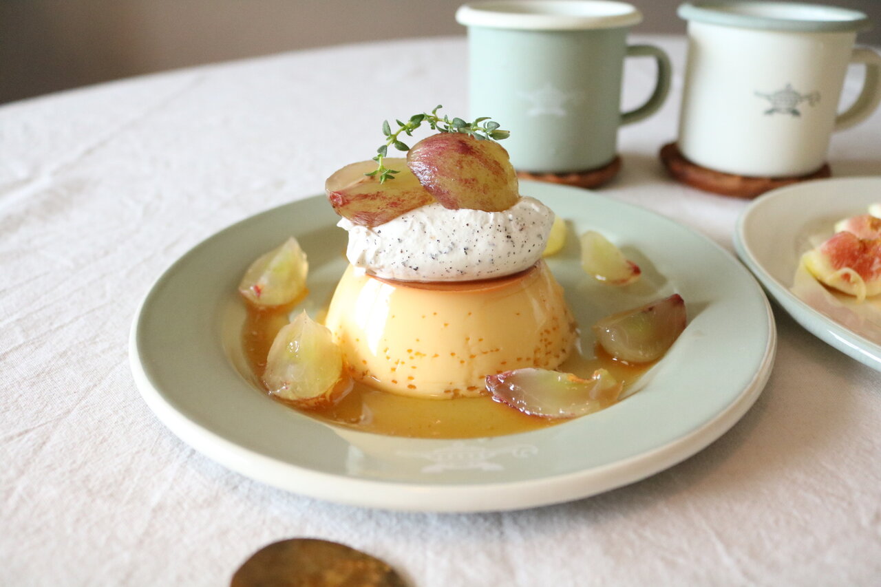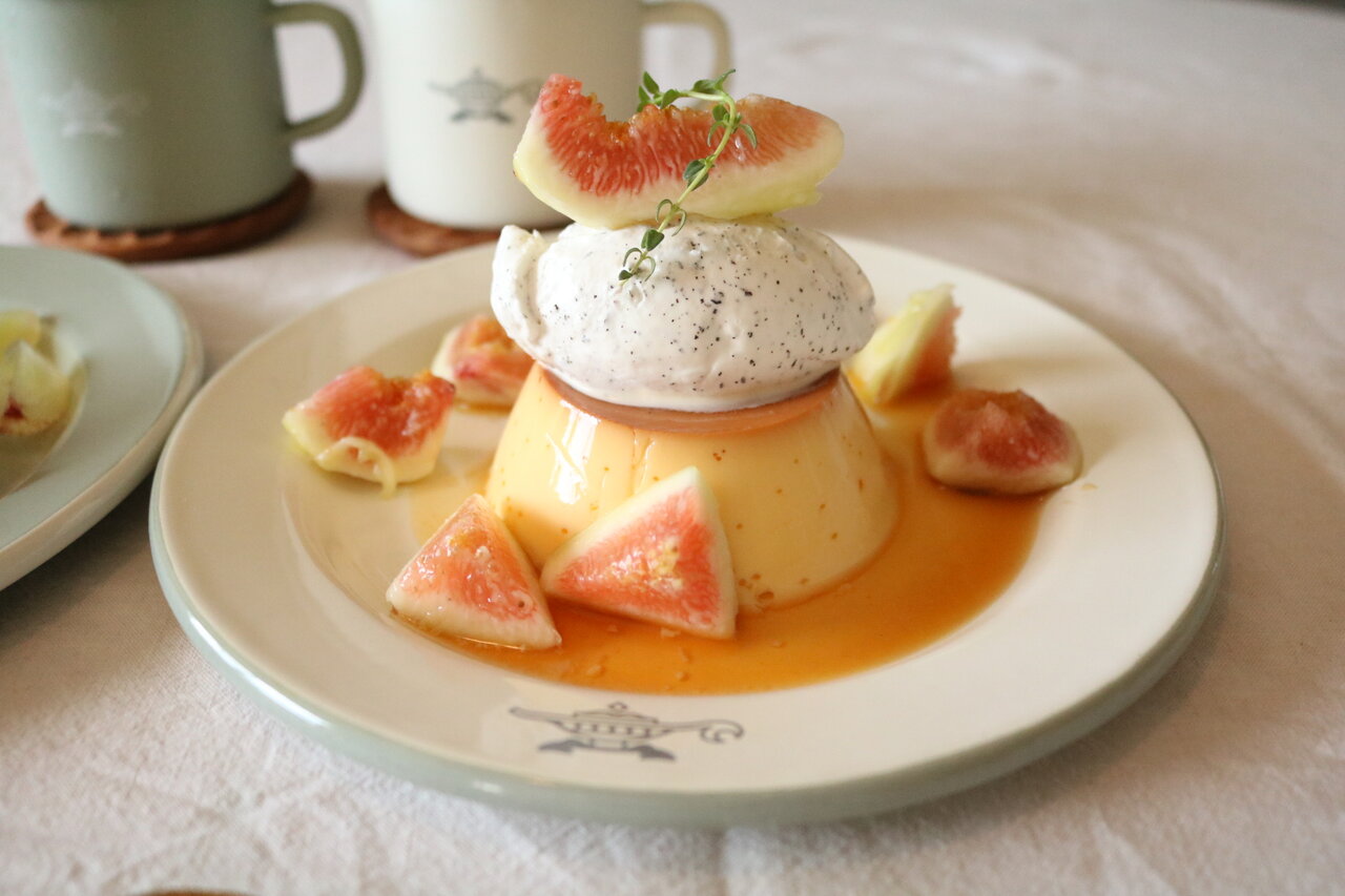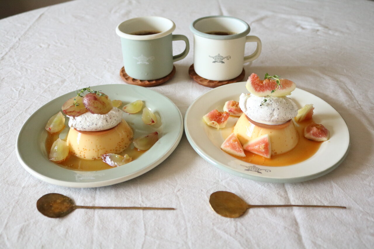 プリンカップをお皿にひっくり返したまま両手で持ち、勢い良く上下に揺らすと、型からプルンと綺麗に出てきます♪