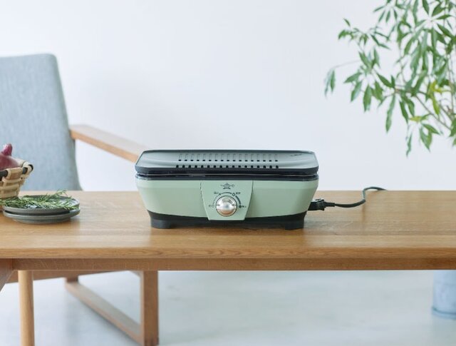 本の伝統的な暮らしの道具「七輪」のような、手軽に本格的な焼肉が楽しめる新発想のグリラーです。グラファイトヒータ®を搭載し、遠赤輻射熱を利用して旨味を逃さず焼き上げます。さらに、750Wと嬉しい省電力設計や煙を抑えた「減煙モード」を搭載するなど性能にもこだわっています。