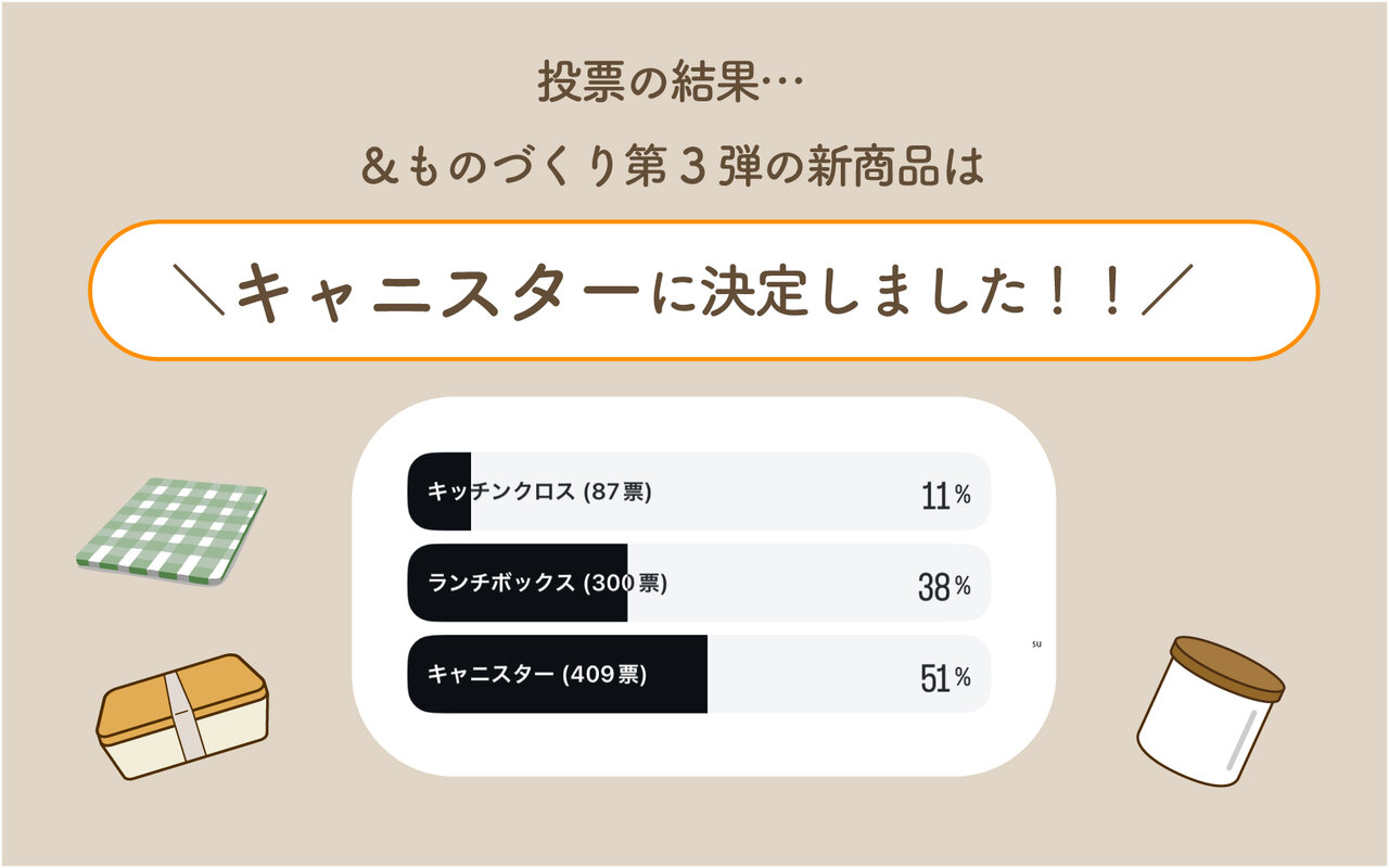 投票の結果、&ものづくり第3弾の新商品は409票を獲得した「キャニスター」に決定いたしました!!!👏
