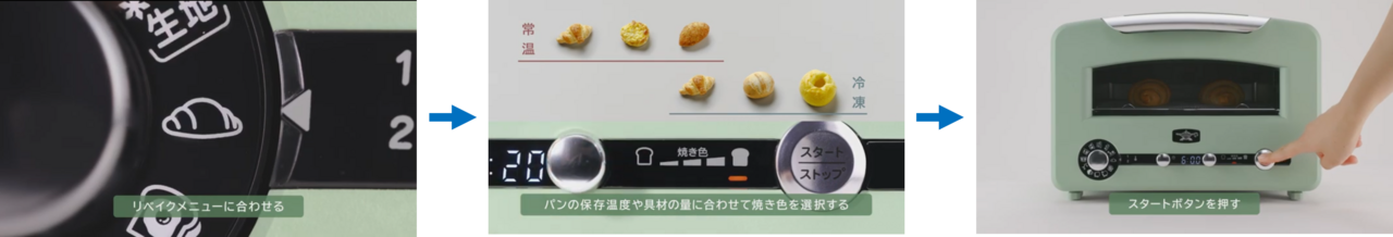 あとは、スタートボタンを押すだけで常に「焼きたて」のパンが完成します。