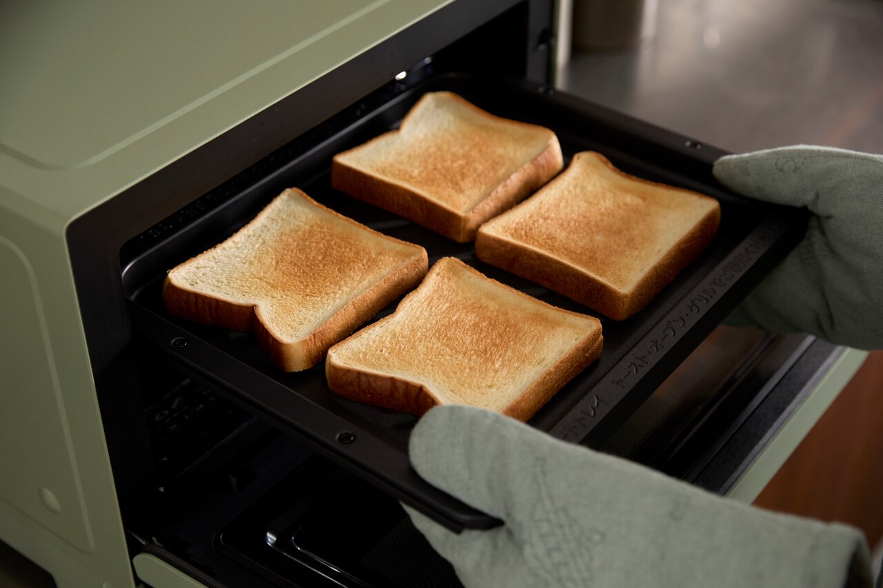 「グラファイトヒータ」とヒートトレイで、トーストの両面を高温で素早く焼き上げます。トースターに負けない仕上がりに。