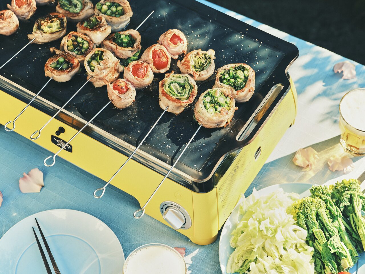 お花見をイベント化したいなら、センゴクアラジンの『ポータブル ガス カセットコンロ kama-do(ツーバーナー)』で作る春野菜たっぷり博多串焼きがぴったり◎