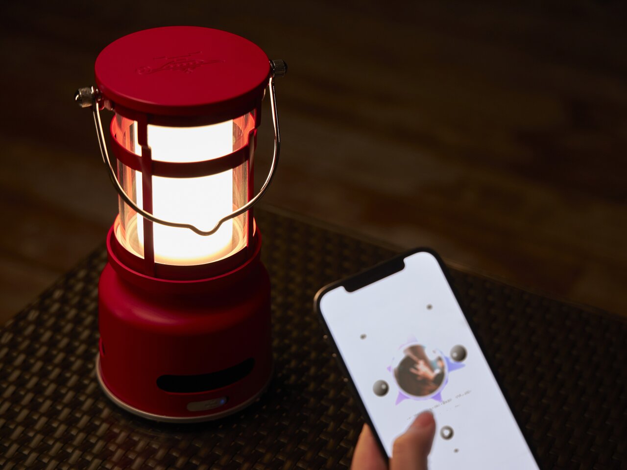 プチランタンスピーカーは、スマホとBluetoothでつなげて音楽を流せるのはもちろん、360°に広がるサウンドで、みんなで囲んで聴きやすいのが魅力。