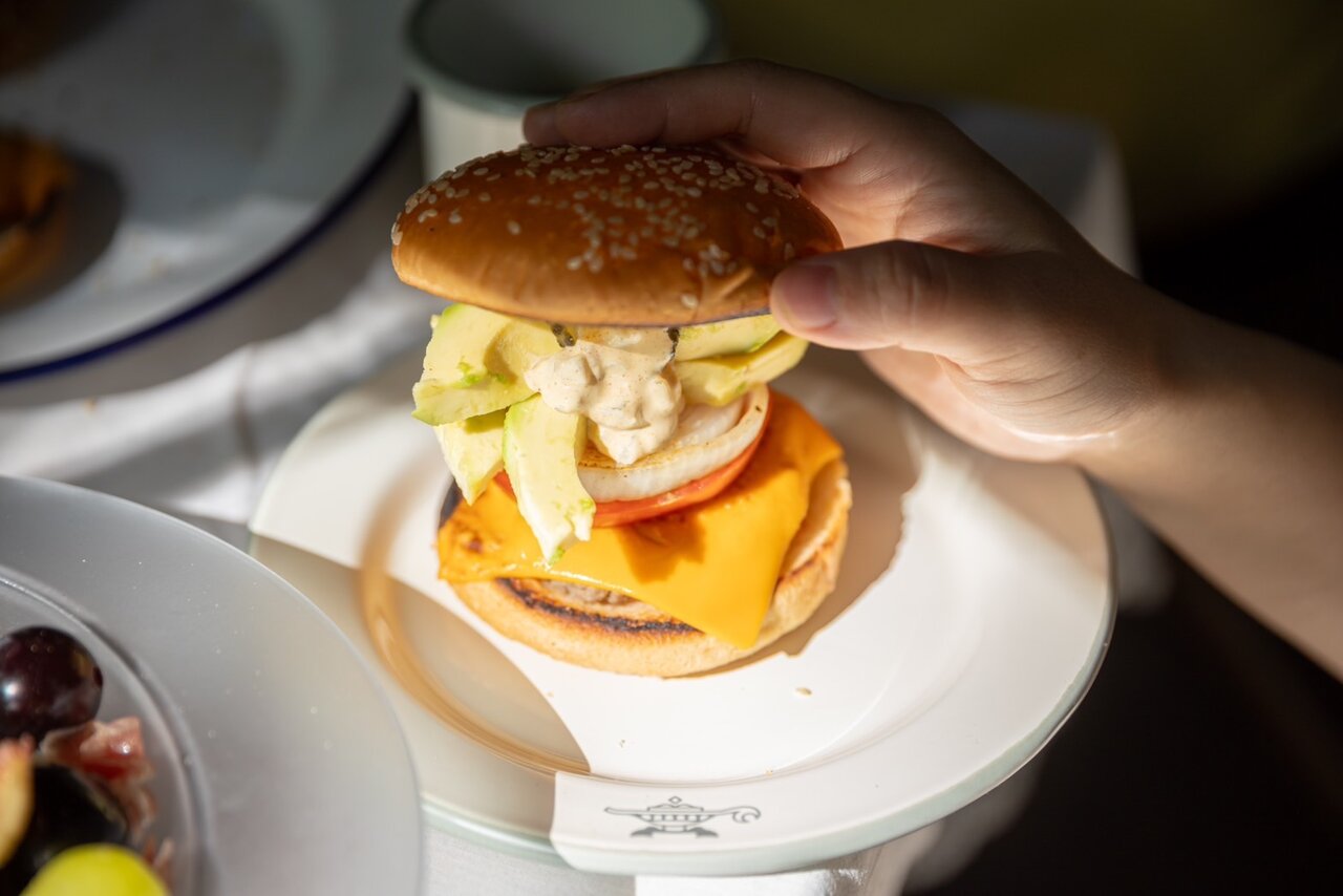 レタスを買い忘れたことを組み立てながら思い出しながら、高さのあるハンバーガー🍔の完成です。