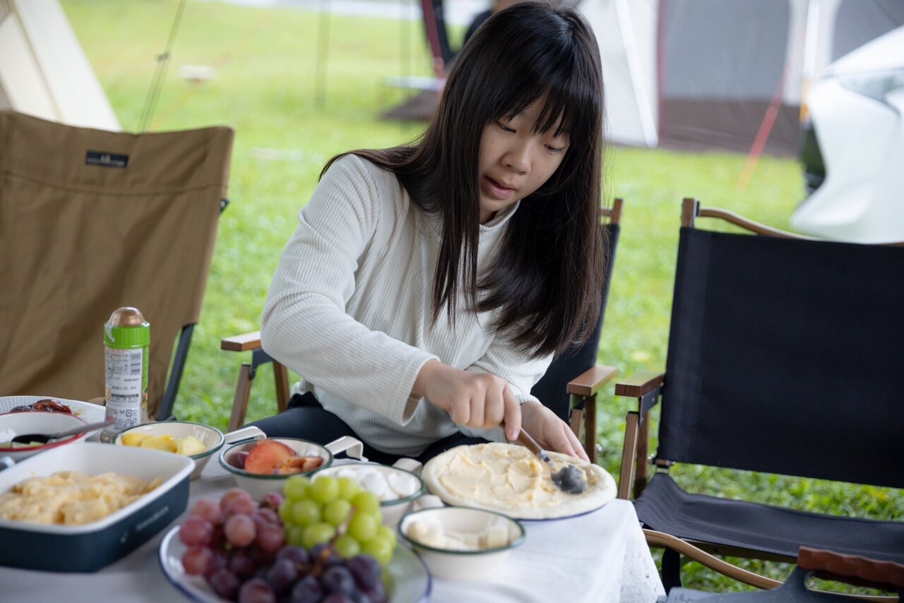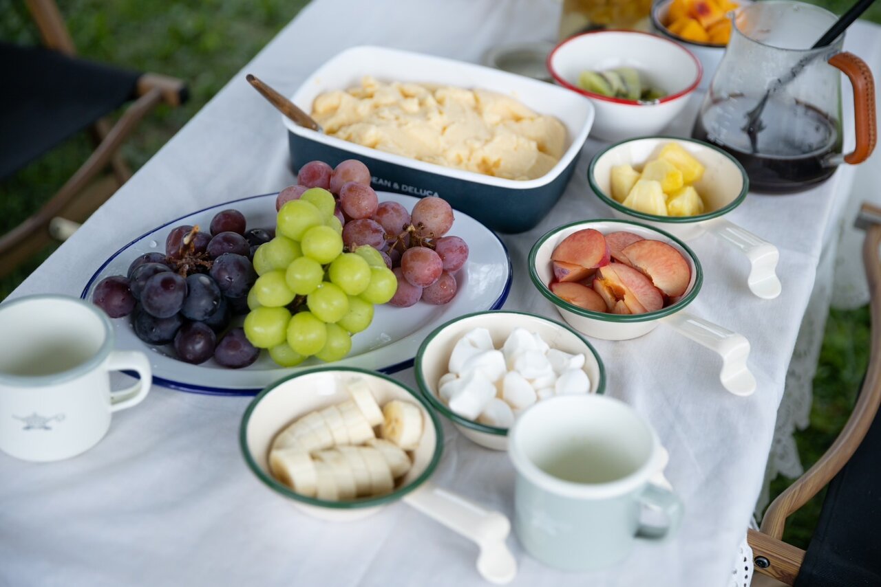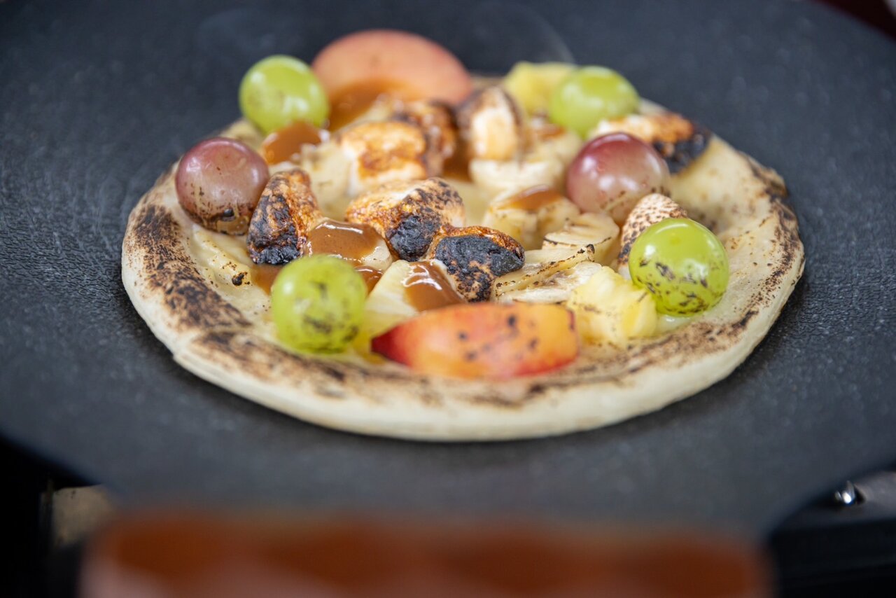 お友達家族とのキャンプでは、フルーツピザを用意しました。