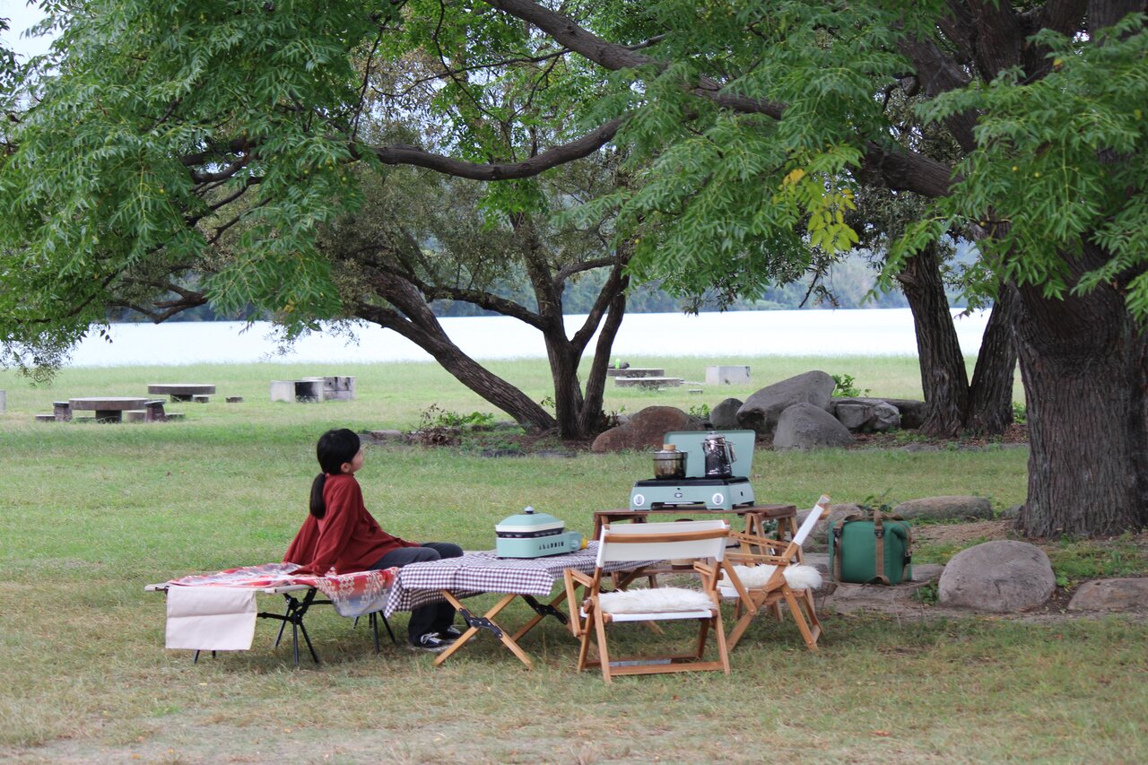 木陰にテーブルとチェアをセッティングして、風の音と鳥の声に包まれながら準備をスタート。